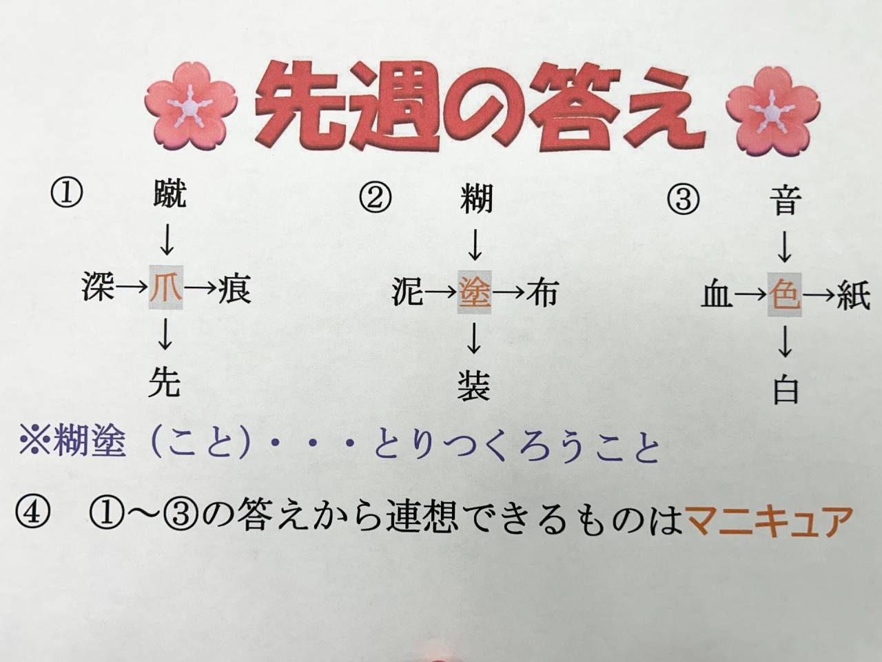 先週の漢字クイズのおさらいです。