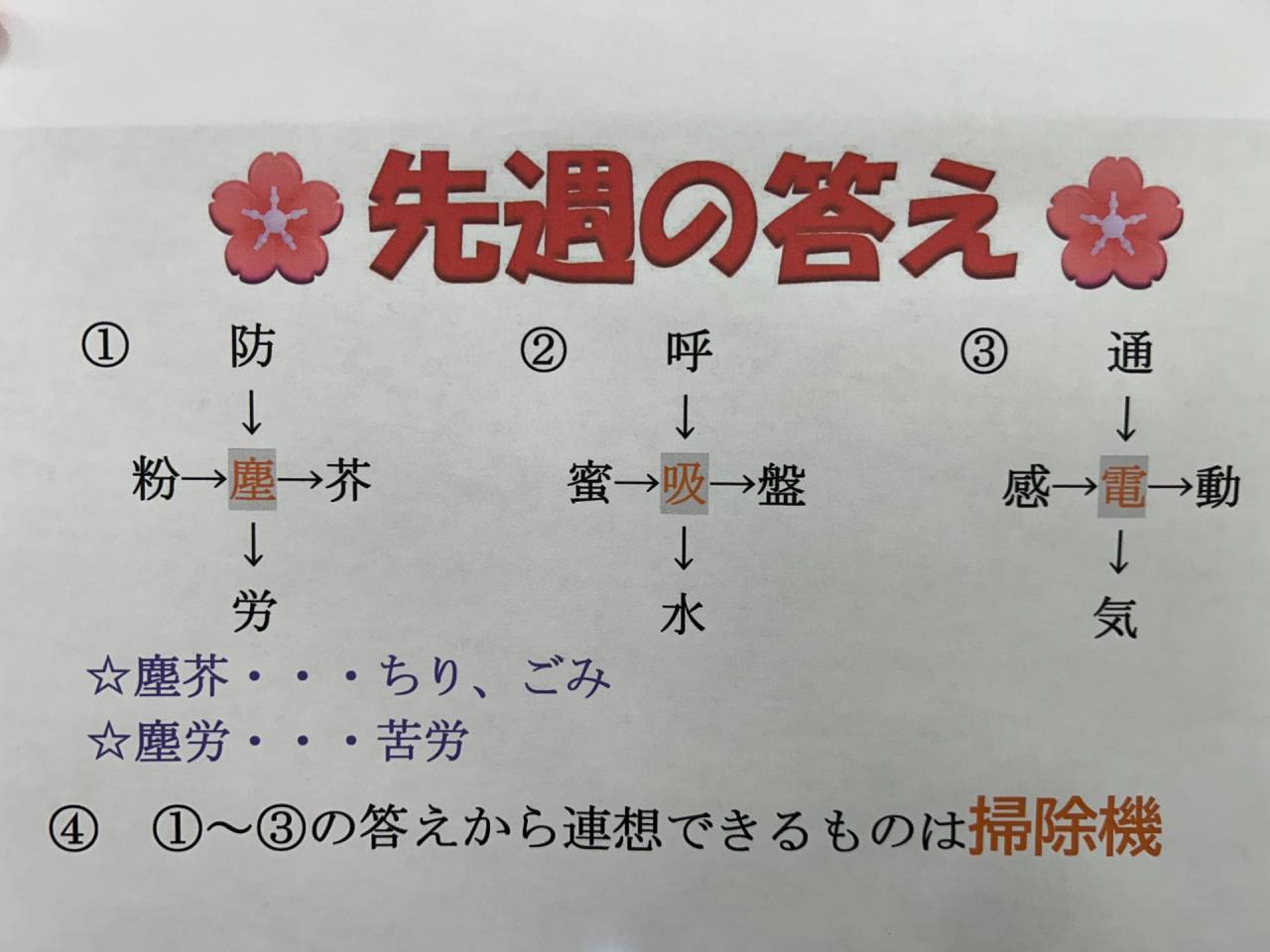 それでは先週の漢字クイズのおさらいです。